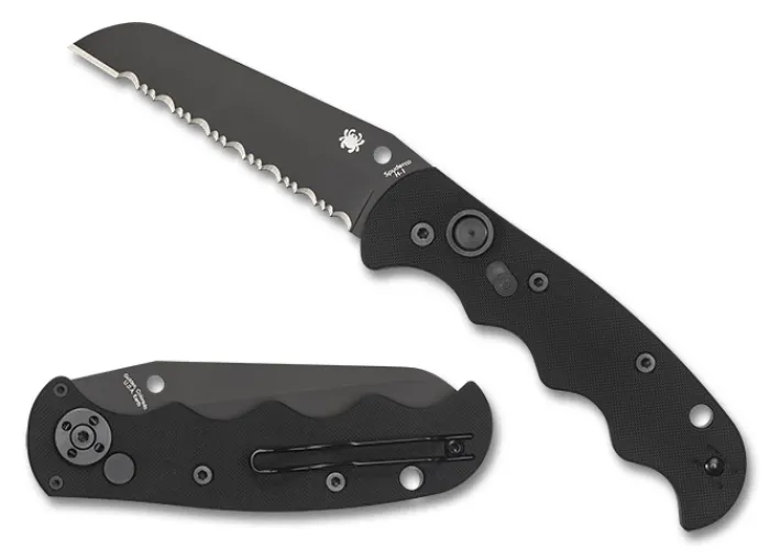 Because many of the features of the Autonomy were so revolutionary, Spyderco also decided to create an all-black version of the knife with a safety and a pocket clip that is ideal for other end users. The heart of this knife is its voracious SpyderEdge™ sheepfoot-style blade, which is ground from H-1® steel—an extraordinary nitrogen-based alloy that is extremely corrosion resistant. To optimize its function in tactical environments where light discipline is a requirement, it receives a tough Diamond Like Carbon (DLC) coating to reduce its reflective signature.