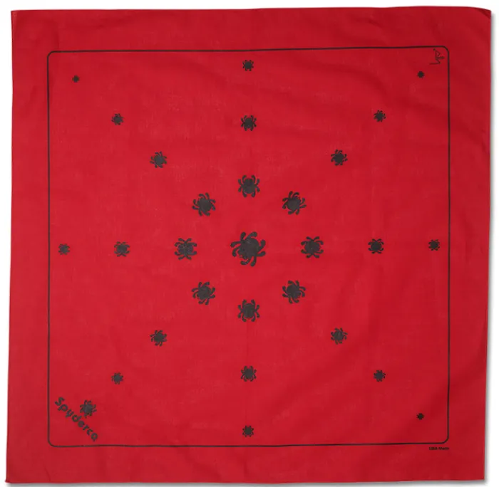 Spyderco bandanas are back! This high-quality, extra-large bandana is 26.5 x 26.5 inches in size and proudly screen printed with black “bugs” on a red background. Proudly made in the USA, this 100-percent-cotton bandana is the perfect way to show your Spyderco pride in style.