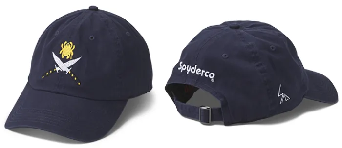 Get some “Respect” Spyderco style with this embroidered blue ball cap featuring crossed Respect Bowie knives and a white “bug” logo. The back of the 100 percent cotton twill hat has an embroidered Spyderco logo and the right side features Sal Glesser’s famous designer’s mark. To achieve the perfect fit, it includes an adjustable fabric strap.